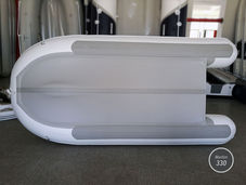 Für unsere Maritim & Adventure-Serie verwenden wir hochwertiges, 5-lagiges DeciTEX 1100 PVC mit Polyesterkern (1.050 g/m²) optional ist Hypalon (CSM) auf Bestellung verfügbar. Alle Tragschläuche werden im langlebigen PVC Schweißverfahren gefertigt – kein Kleben. Praktische Details wie Sonnendachhalterungen, eine Ankerplatte für stabiles Verweilen in der Bucht sowie ein verstärkter, verschraubter GFK-Heckspiegel sorgen für Komfort und Langlebigkeit.