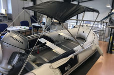 Die umfangreiche Serienausstattung lässt sich durch praktische Extras wie Sonnendach oder Abdeckplane ergänzen. Passend dazu bieten wir moderne 4-Takt- oder Elektro-Außenborder als offizieller Händler von SUZUKI, HONDA, MERCURY und TORQEEDO.