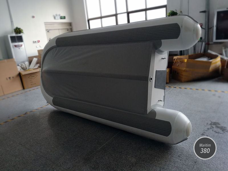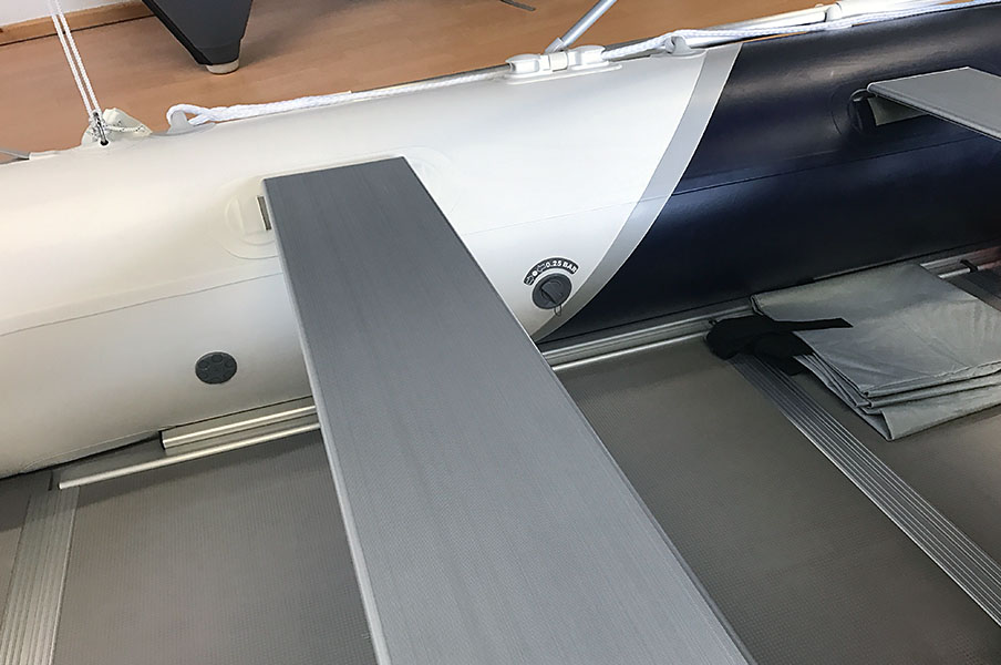 Für unsere Maritim & Adventure-Serie verwenden wir hochwertiges, 5-lagiges DeciTEX 1100 PVC mit Polyesterkern (1.050 g/m²) optional ist Hypalon (CSM) auf Bestellung verfügbar. Alle Tragschläuche werden im langlebigen PVC Schweißverfahren gefertigt – kein Kleben. Praktische Details wie Sonnendachhalterungen, eine Ankerplatte für stabiles Verweilen in der Bucht sowie ein verstärkter, verschraubter GFK-Heckspiegel sorgen für Komfort und Langlebigkeit.