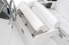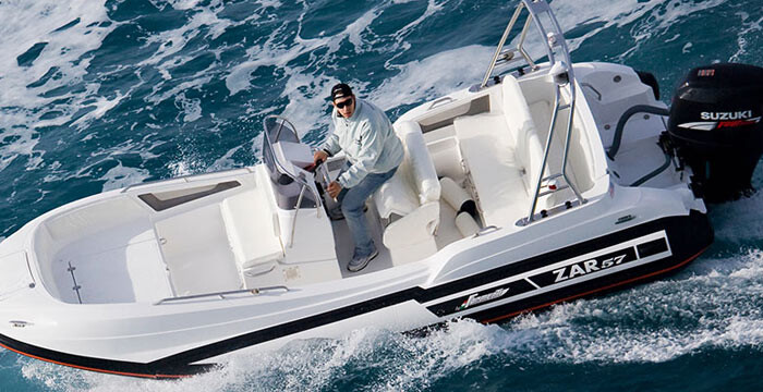 Verbessert durch unzähliges Zubehör, wie komfortable Seitentaschen und ca. 160 Liter Tankvolumen unter Deck, eine Vorrichtung zum Anbringen einer elektrischen Ankerwinde und einem Fahrersitz mit Dreifach-Funktion, haben das ZAR 57 Well-Deck ein neues, sehr individuelles Design, das Hand in Hand geht mit seiner Schubkraft und das dynamische Gleichgewicht eines jeden seiner Elemente gleichermaßen betont.
